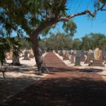 Il Cimitero di Broome, che si trova in Port Drive, è un po’ l’immagine dall’oltretomba della cittadina australiana: diviso in sezioni in base all’origine o alla religione dei suoi ospiti (cimitero cinese, giapponese, ebreo e musulmano), nato per ospitare i cacciatori di perle che hanno perso la vita, e a tratti completamente abbandonato.